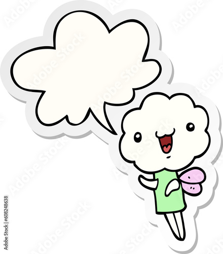 Fototapeta premium cute cartoon cloud head creature with speech bubble sticker