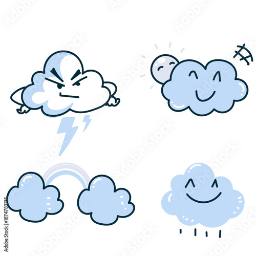 Fototapeta premium cute cartoon cloud weather like rainbow rain and thunder in hand drawn style