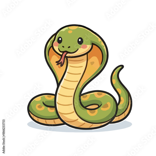 © RahmahTaqi, Fototapeta premium Cute Cartoon Cobra Snake Vasuki on Neck of Lord Shiva Vector Illustration Isolated on White Background for Hindu Religious Festival Mahashivratri Design Element