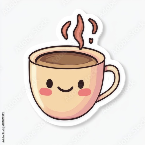 Obraz premium Cute cartoon coffee cup with kawaii face and steam. (1)