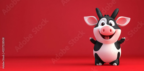 Fototapeta premium Cute cartoon cow character smiling on red background
