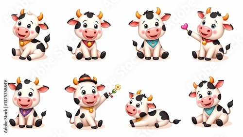 Fototapeta premium Cute Cartoon Cow Illustrations in Various Playful Poses