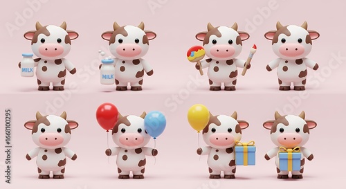 © Dion, Obraz premium Cute cartoon cows celebrating a party