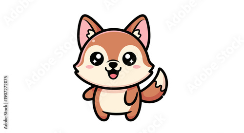 Obraz premium Cute cartoon coyote with a happy expression standing on white background