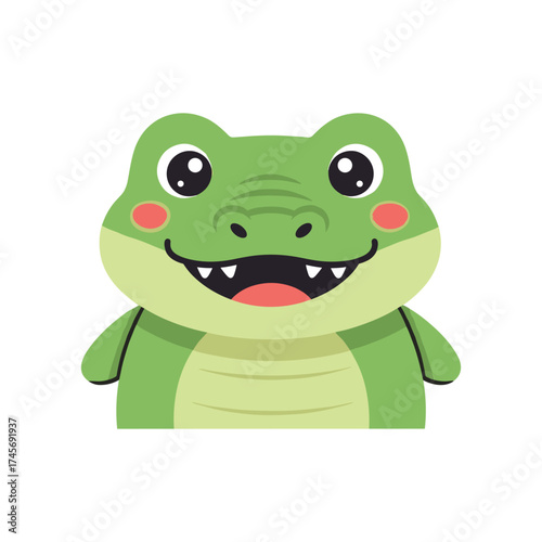 © Civic, Fototapeta premium Cute cartoon crocodile character smiling with a friendly expression against a plain background
