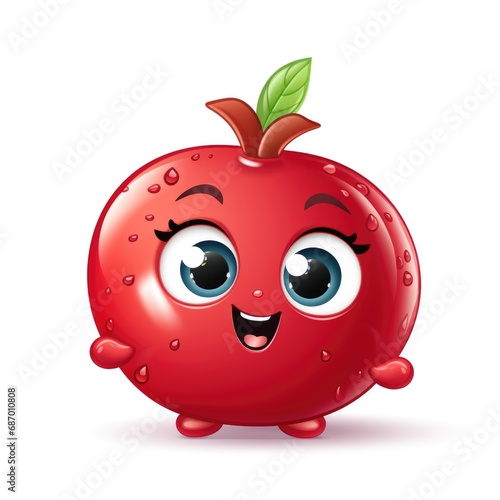 © dashtik, Fototapeta premium Cute cartoon 3d character pomegranate with eyes on white background