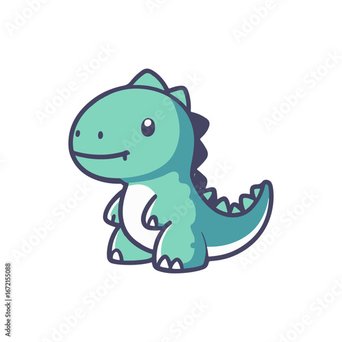 © Rtxyoi, Fototapeta premium Cute cartoon dinosaur character standing confidently with a friendly expression on a white background