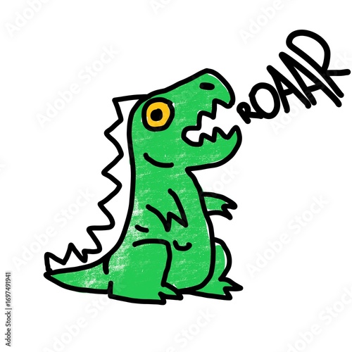 © Overdoser, Obraz premium Cute Cartoon Dinosaur Roaring Illustration