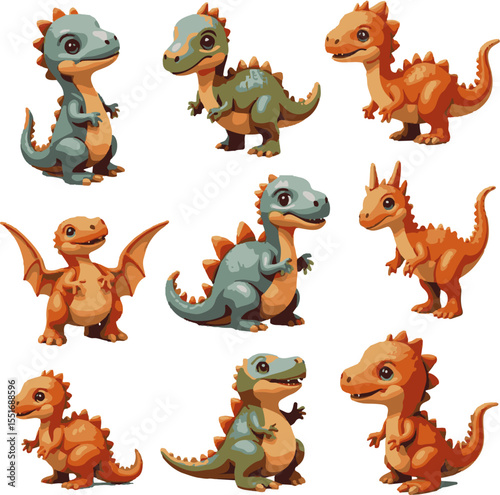 © benjamin, Naklejka premium Cute Cartoon Dinosaur Sticker Collection, Adorable Baby Dino Stickers, Colorful Dinosaur Clipart Set