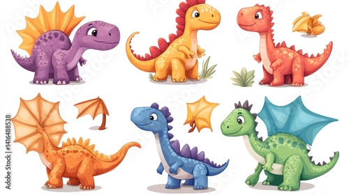 © 11faqihtanjung, Fototapeta premium Cute cartoon dinosaurs in various colors (6)