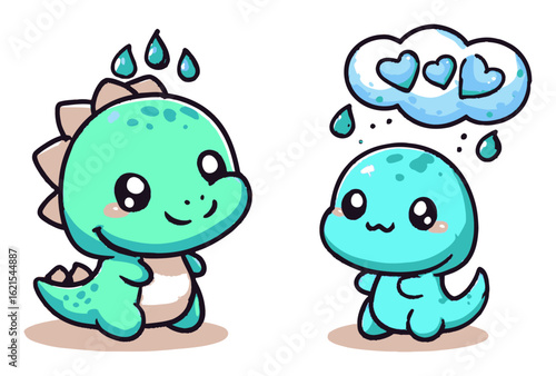 Obraz premium Cute Cartoon Dinosaurs with Emotions and Heart Symbols in Colorful Style