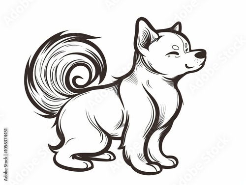 Obraz premium Cute Cartoon Dog in Line Art Style