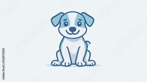 Obraz premium Cute cartoon dog sitting, simple line art, light background, digital illustration, use in children's books or websites
