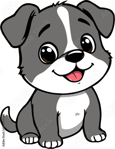 © MdSyed, Fototapeta premium Cute cartoon dog sitting with tongue out and smiling
