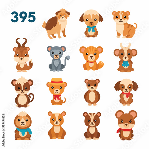 Fototapeta premium Cute Cartoon Dogs Set