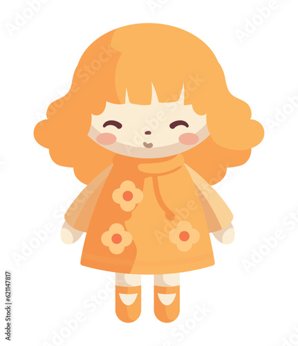 © Jemastock, Fototapeta premium Cute cartoon doll toy in yellow dress icon