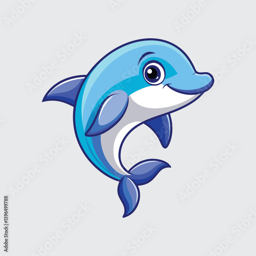 Fototapeta premium Cute cartoon dolphin, a blue marine mammal, swimming and jumping isolated on white
