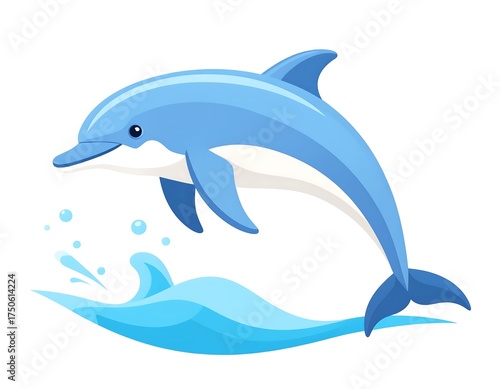 Obraz premium Cute cartoon dolphin jumping over a wave