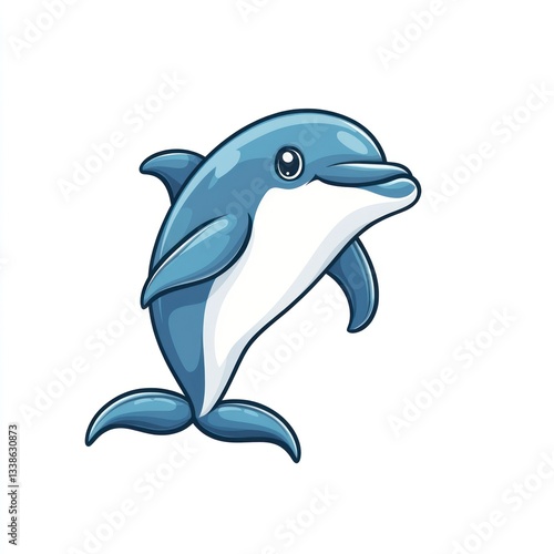 Fototapeta premium Cute cartoon dolphin leaping, playful, simple, background white