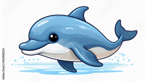Fototapeta premium Cute cartoon dolphin swimming happily in the ocean.