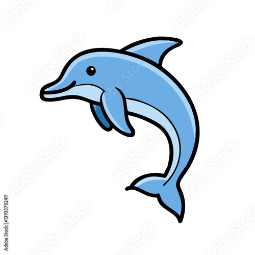 © IsratJahan, Naklejka premium Cute cartoon dolphin vector illustration for kids educational resources design on transparent background