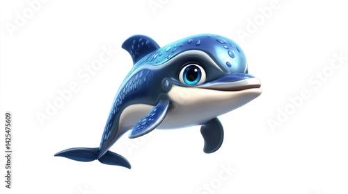© risyad, Fototapeta premium Cute cartoon dolphin, water droplets
