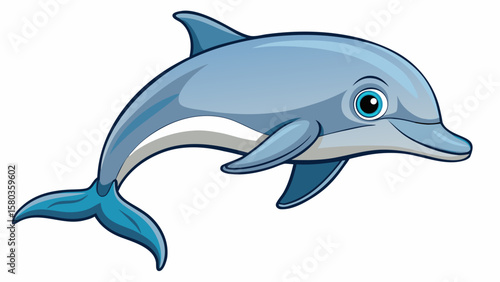 Obraz premium Cute cartoon dolphin with big blue eyes swimming joyfully