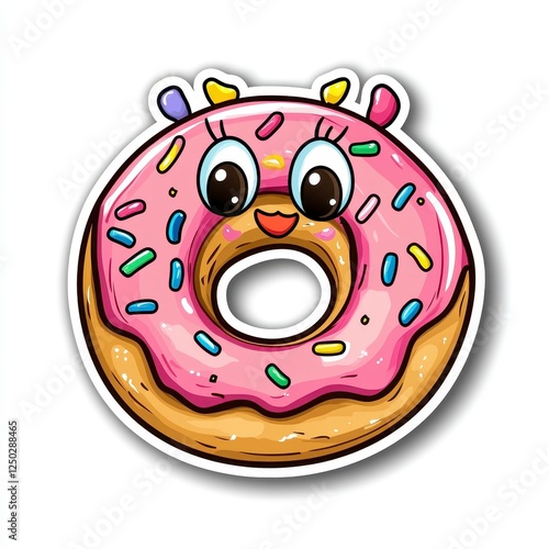 Fototapeta premium Cute Cartoon Donut with Sprinkles and Happy Face Illustration
