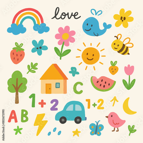 Fototapeta premium Cute cartoon doodle elements for kids design