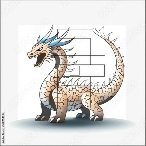 © Tungbackground, Fototapeta premium Cute Cartoon Dragon with Blue and White Scales