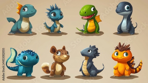 © 11faqihtanjung, Naklejka premium Cute cartoon dragons and lizard characters