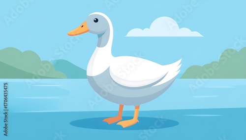 © Lis, Fototapeta premium Cute cartoon duck by a lake