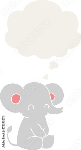 Obraz premium cute cartoon elephant and thought bubble in retro style