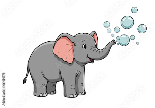 Fototapeta premium Cute Cartoon Elephant Blowing Bubbles Illustration png, isolated on...