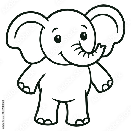 © Rozina, Naklejka premium Cute Cartoon Elephant Line Art Illustration Adorable Elephant Drawing for Coloring Book