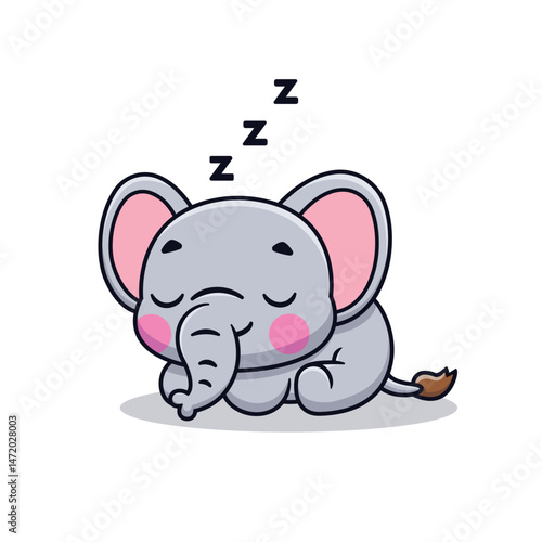 Fototapeta premium Cute Cartoon Elephant Sleeping Tired Illustration Icon Vector, Animals Nature, Cartoon Style Flat