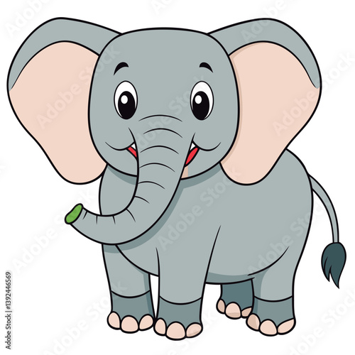 Fototapeta premium Cute cartoon elephant smiles happily.