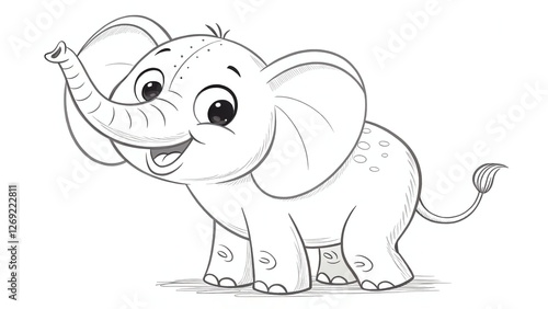 © Phubodee, Obraz premium Cute cartoon elephant smiling happily.