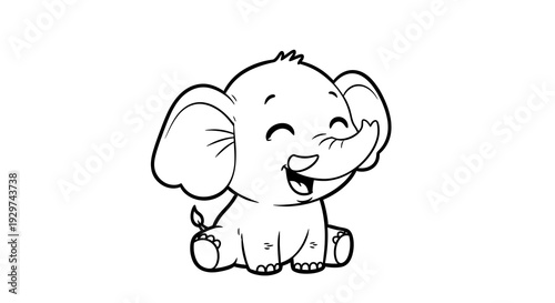 Fototapeta premium Cute cartoon elephant smiling happily.