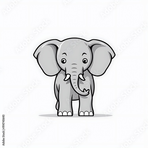 © Gerges, Fototapeta premium Cute Cartoon Elephant Standing on White Background