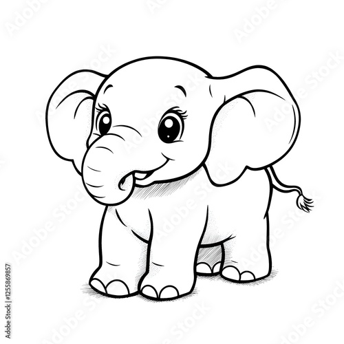 © LookChin AI, Naklejka premium Cute Cartoon Elephant with Blank Outline for Coloring and Art Activities
