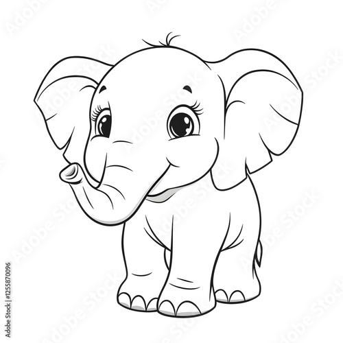 © LookChin AI, Naklejka premium Cute Cartoon Elephant with Blank Outline for Kids to Color