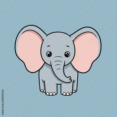 © Arep, Naklejka premium Cute Cartoon Elephant with Large Ears and Big Eyes, Standing Upright.