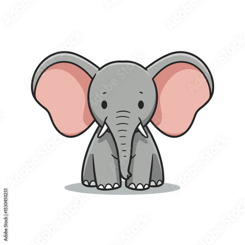 © Elsha, Fototapeta premium Cute cartoon elephant with large ears, centered on a white background, ideal for children's themes