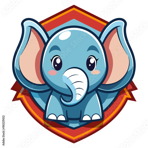 Fototapeta premium Cute Cartoon Elephant with Large Ears in a Colorful Shield
