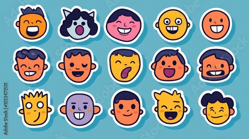 © Montaha Hossain, Obraz premium Cute Cartoon Faces: A Collection of Smiling Stickers