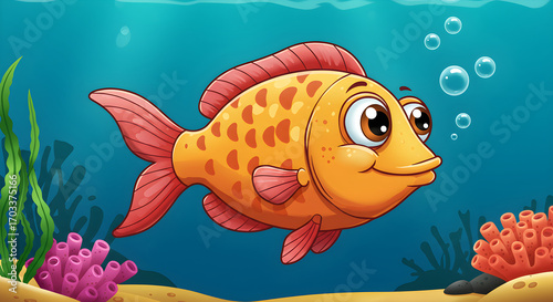 Fototapeta premium Cute Cartoon Fish Illustration with Bubbles