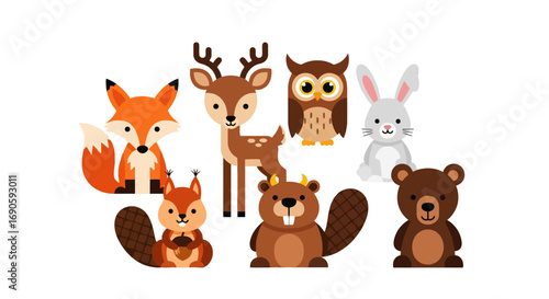 Fototapeta premium Cute cartoon forest animals collection on white background.
