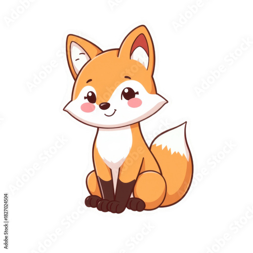 © Mahmudul, Obraz premium Cute cartoon fox sitting and smiling isolated on transparent background