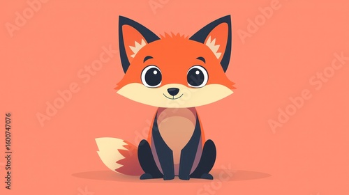 © Mr Isharyanto, Obraz premium Cute cartoon fox sitting on coral background